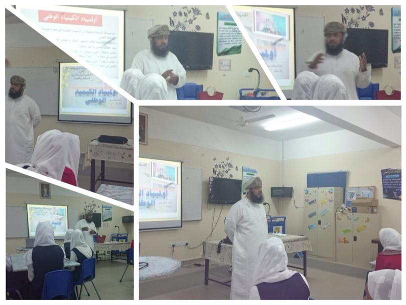 أستضافت جماعةالعلوم مشرف الكيمياء إ:علي البلوشي.وقام بعمل مشغل تعريفي عن مسابقة أولمبياد الكيمياءوتعريف الطالبات بها