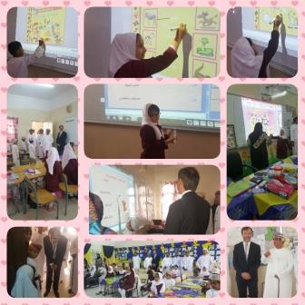 وقد تم الترحيب بالضيوف ومن ثم التوجه للقاعات الدراسية ومشاهدة حصص دراسية باستخدام السبورات التفاعلية.