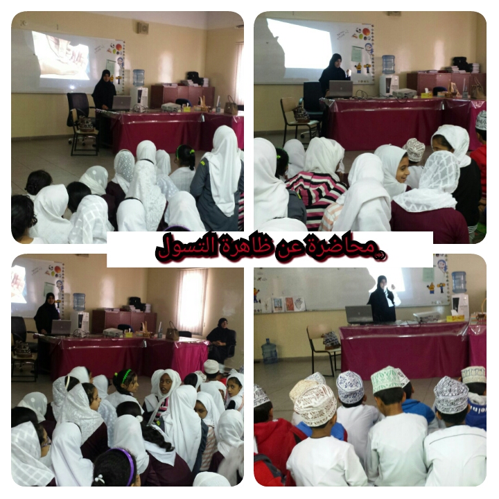 مسرحية عن ظاهرة التسول وذلك يوم الأربعاء 17/2/2016م قدمها طلاب الصف الرابع تحت اشراف اخصائية الأنشطة المدرسية ( أ .أمل الربيعي ) والاخصائية الاجتماعية ( أ. دلال البلوشي)
