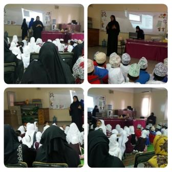 توعية في طابور الصباح عن التسول تعقيبا على المسرحية قدمتها اخصائية الأنشطة المدرسية ( أ .أمل الربيعي )