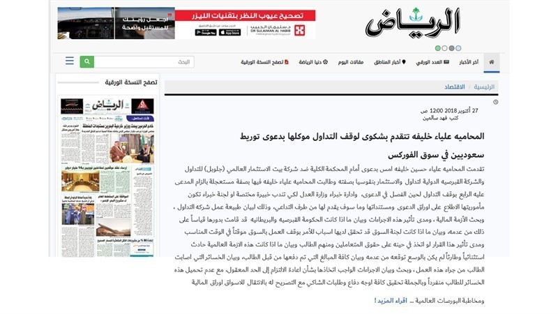 - تتقدم بشكوى لوقف التداول موكلها بدعوى توريط سعوديين في سوق الفوركس