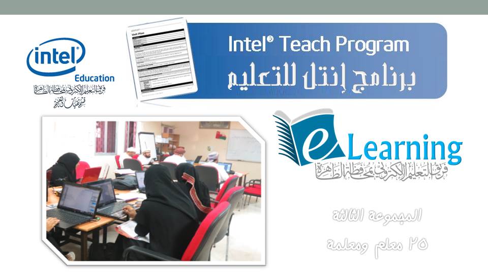 اختتمت بمحافظة الظاهرة دورة أساسيات برنامج إنتل للتعليم (المجموعة الثالثة)، استهدفت الدورة عدد 25 معلم ومعلمة من مختلف مدارس المحافظة ضمن خطة قسم تقنيات التعليم بالتنسيق مع دائرة تقنيات التعليم بالوزارة لإستهداف جميع المعلمين والمعلمات والمشرفين التربويين للتدريب على تزويد المعلمين بالمهارات اللازمة لدمج التكنولوجيا بشكل فعال في مناهج الدراسة الحالية لتحسين مستوى تعلم الطلاب والتعريف بأساليب التعلم القائم على المشروعات.