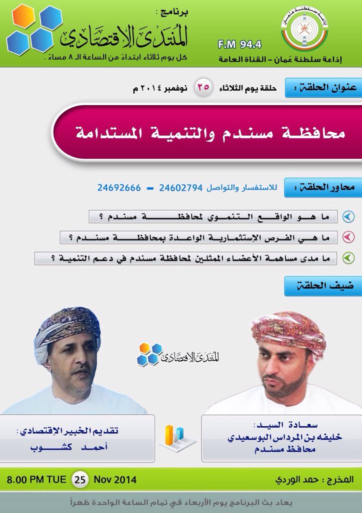 واليوم نطرح لكم حلقة عنالمنتدى الاقتصادي محافظة مسندم والتنمية المستدامة يستضيف سعادة