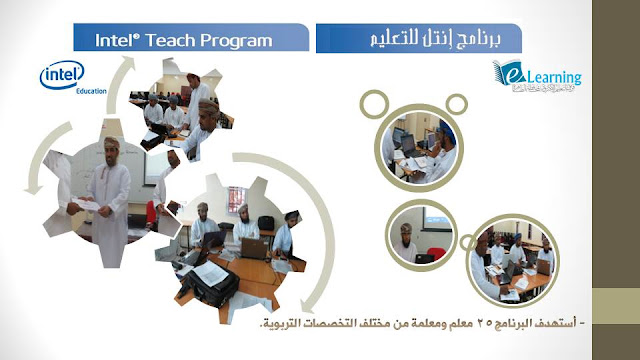 يأتي برنامج إنتل للتعليم تحت إشراف قسم التعليم الإلكتروني بدائرة المحتوى والتعليم الإلكتروني بالوزارة، ويسعى خلال المراحل القادمة تدريب جميع معلمي المواد بمدارس السلطنة. قدم البرنامج مدرب إنتل بمحافظة الظاهرة وليد بن علي الناصري ومشاركة علي الشهومي مشرف أنظمة بشعبة التعليم الإلكتروني في تقديم بعض البرامج التقنية وأدوات الإتصال.