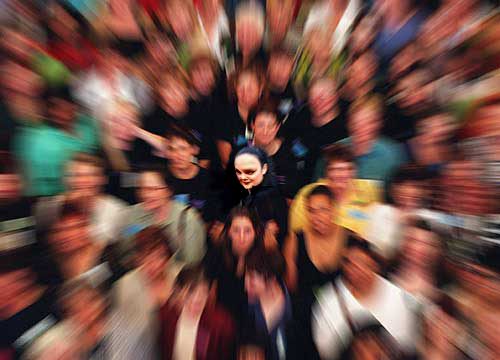 وتبدأ الأفكار كفلم في عدسة عينيها ..هناك التراص الذي تطالعك به الحشود.. صفوف وصفوف لا ترى منها إلاّ الصف الأول فقط، والباقي وجوه، لا تنقص اللوحة إلا توقيع فنان ما...وهو إن قُدّر له أن تكون بينهم فستسقط تحت أقدامهم ويدهسونها.. ثم تموت..