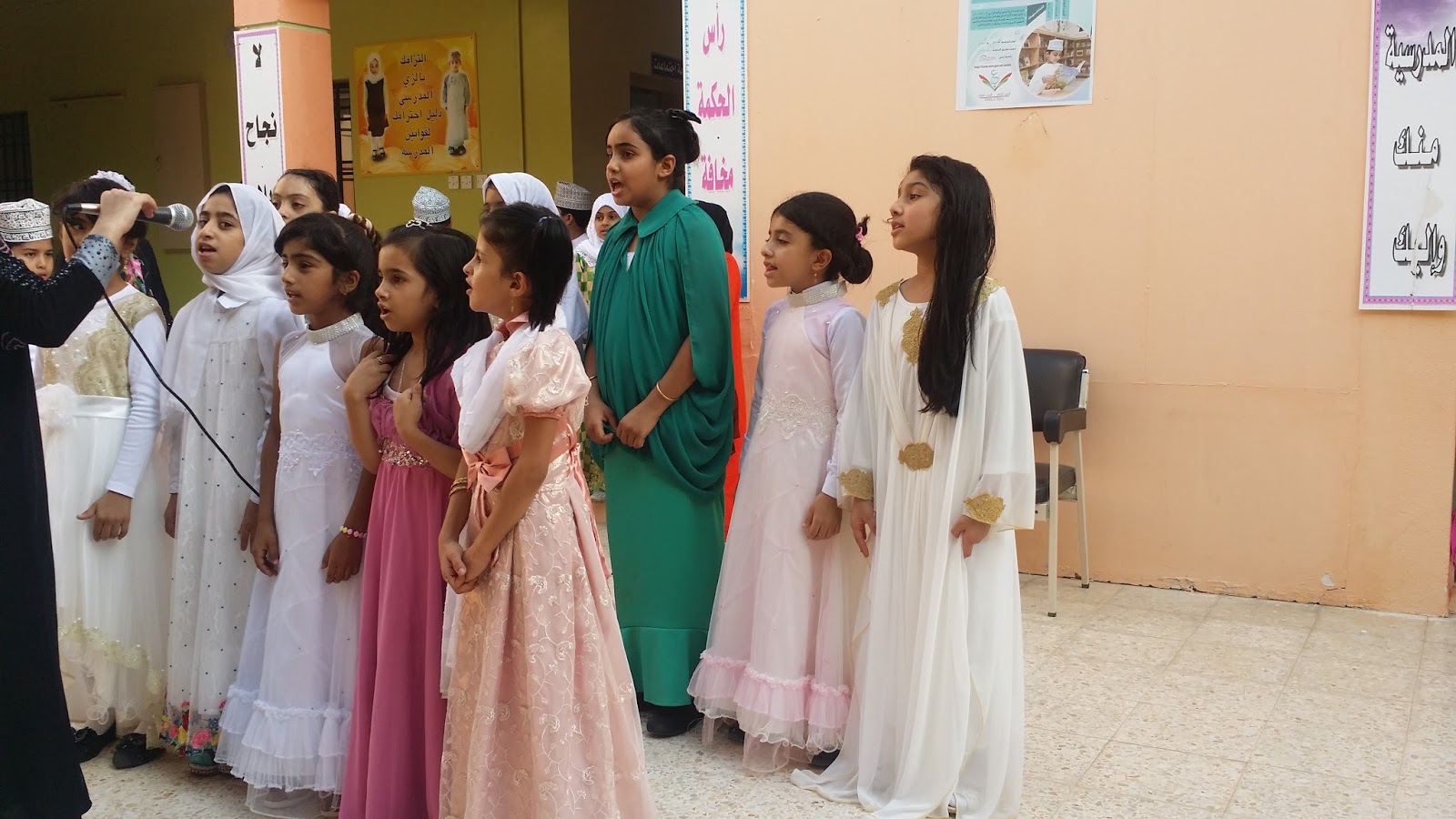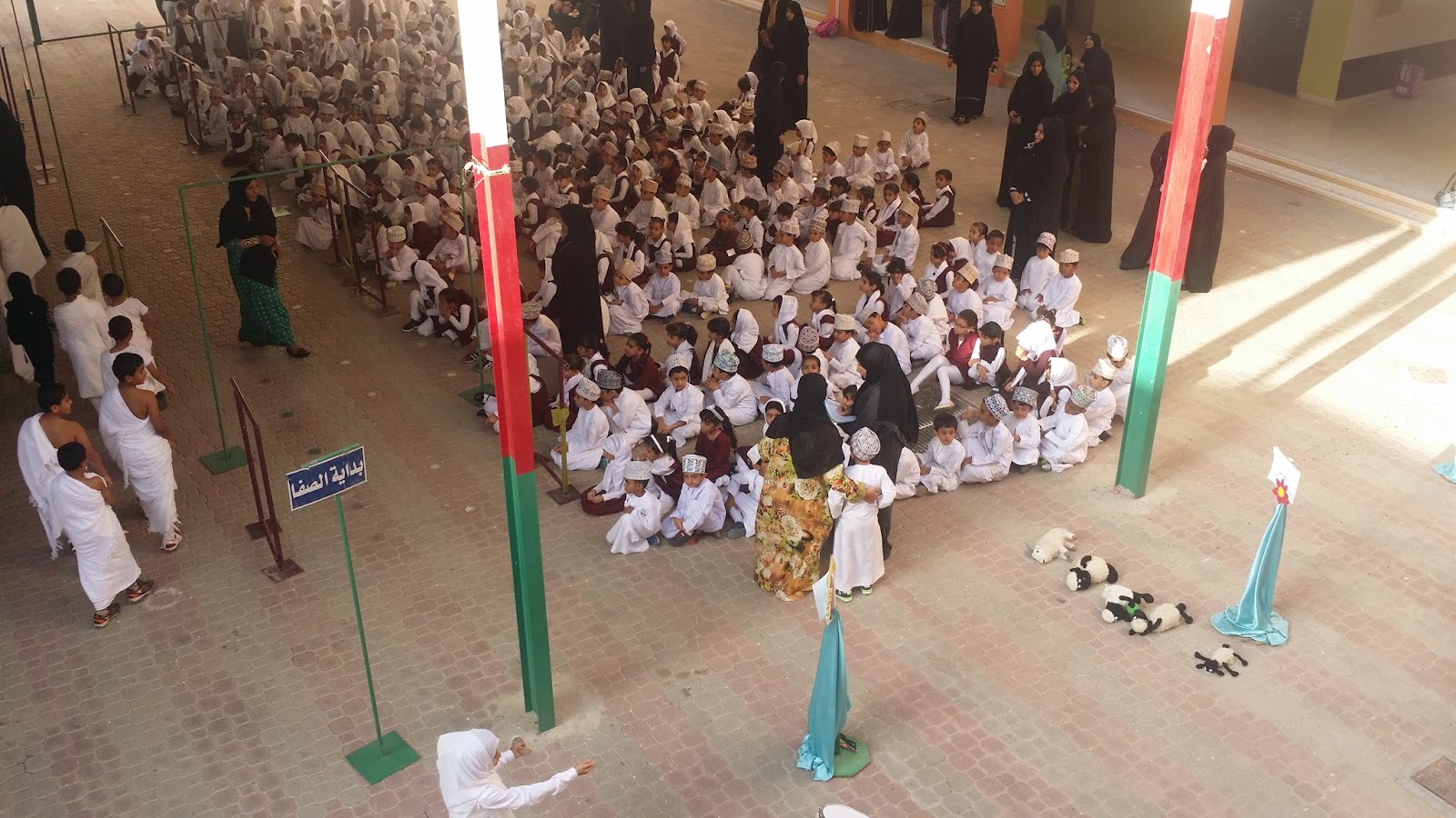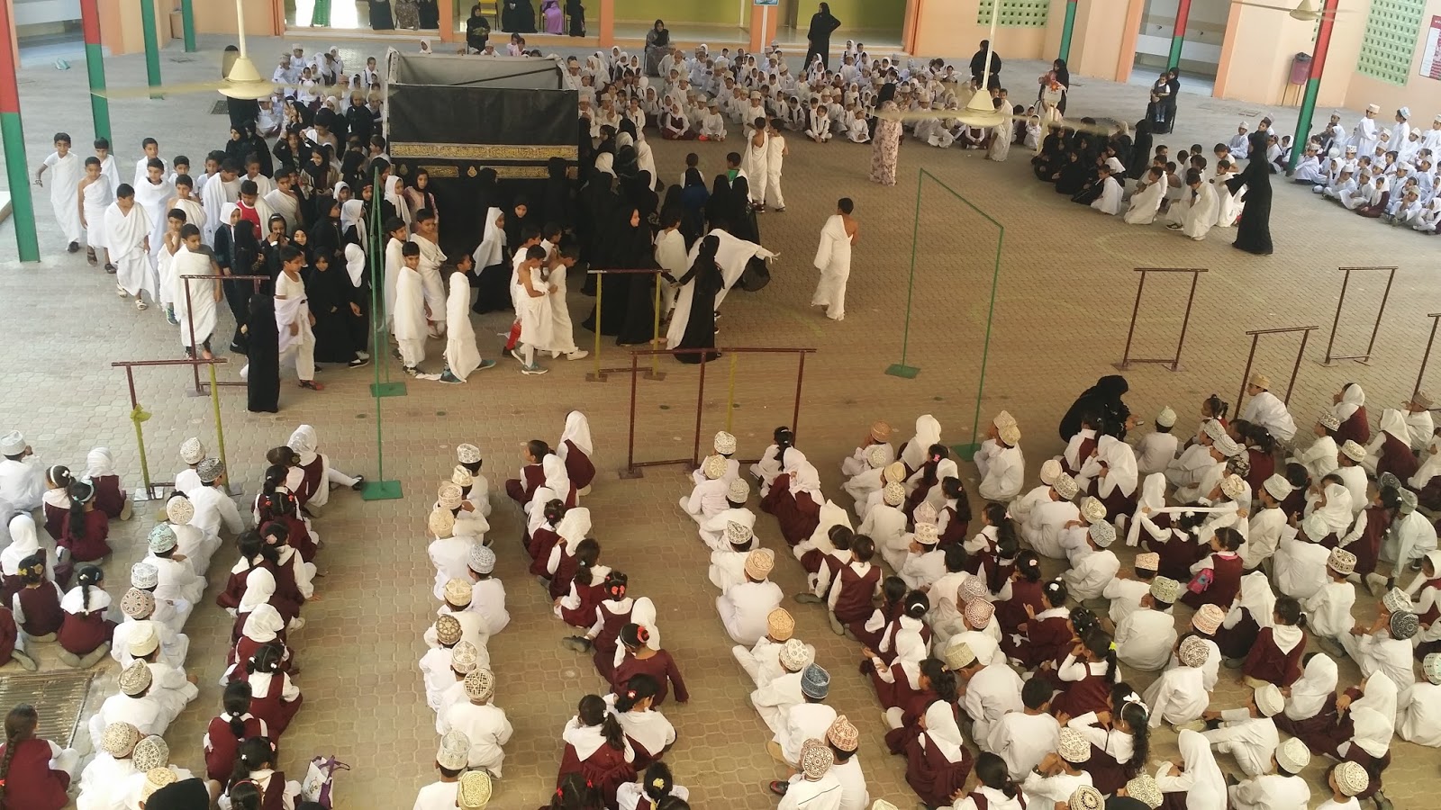 مرددين التلبية بأصوات شجية بحناجرهم البريئة
