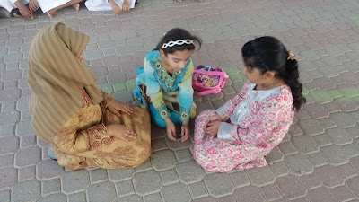 وللعيد وأيامه فرحة تشمل عادات وتقاليد عمانية أصيلة تتضمن فرحة العيد رقصات وألعاب شعبية رائعة ومأكولات شعبية متوارثة كالمشاكيك والشواء والمقلي مع سوق خيري ومن هنا نعرض لكم بعض ما تم من فعاليات تحت سقف صرحنا الشامخ