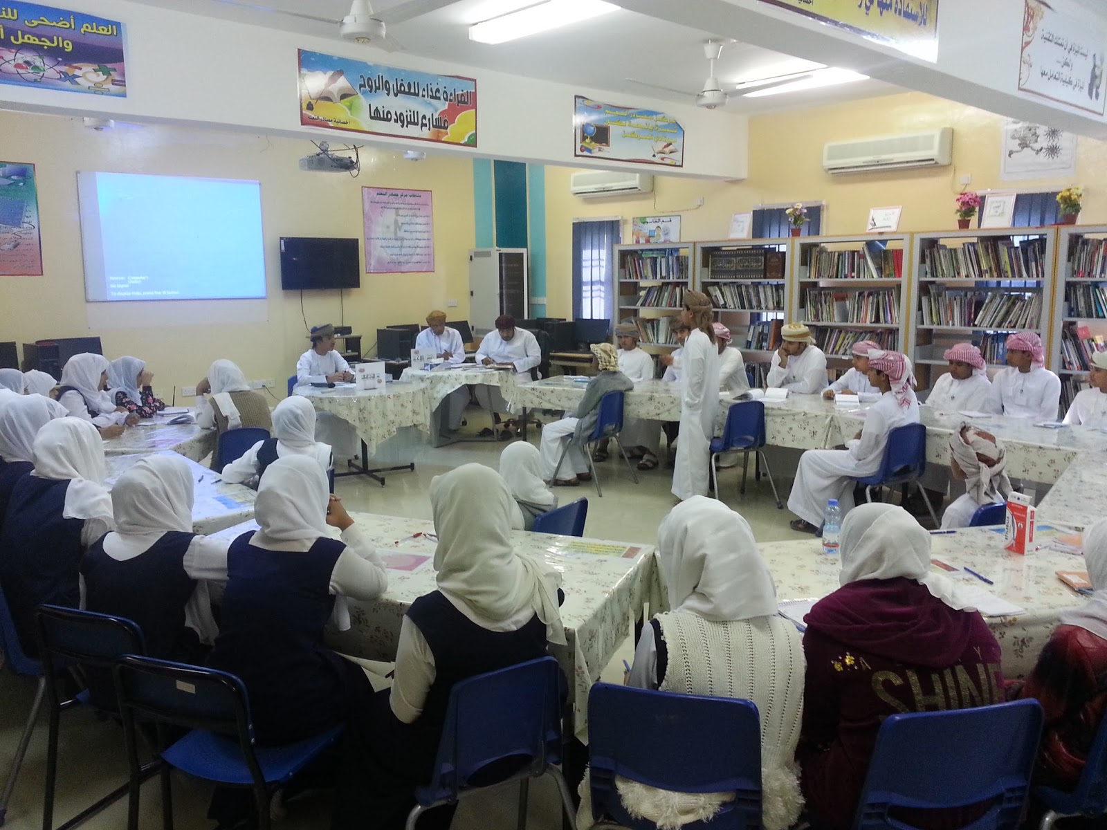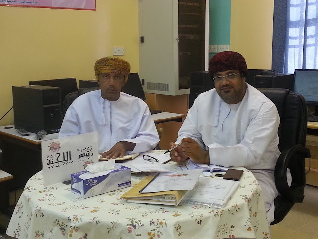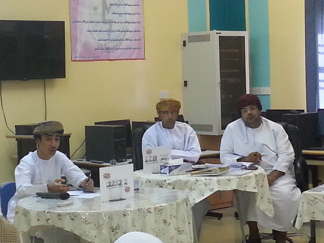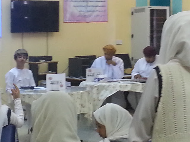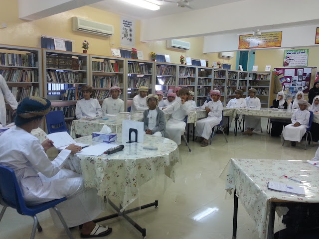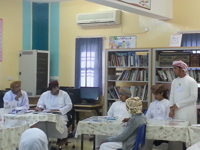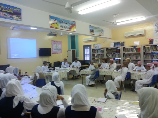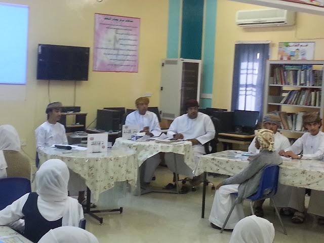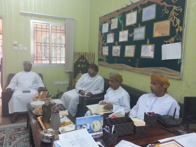 كانت البداية في استقبال اللجنة المكونة من الافاضل الأستاذ عامر الصوافي و الاستاذ أحمد النعيمي والأستاذ صالح الغافري و الاستاذ راشد الشندودي بغرفة مدير المدرسة الاستاذ طلال الشملي حيث تم الترحيب بهم و بعدها قامت اللجنة بالجلوس مع الإدارة الطلابية والاطلاع على الملفات والاستمارات الخاصة بالمسابقة ، ثم المرور على الفصول الدراسية ومناقشة الطلاب عن البيئة والصحة ، وكذلك أخذ جولة في مرافق المدرسة للتأكد من نظافتها .