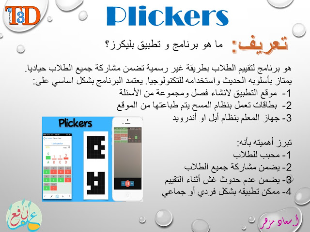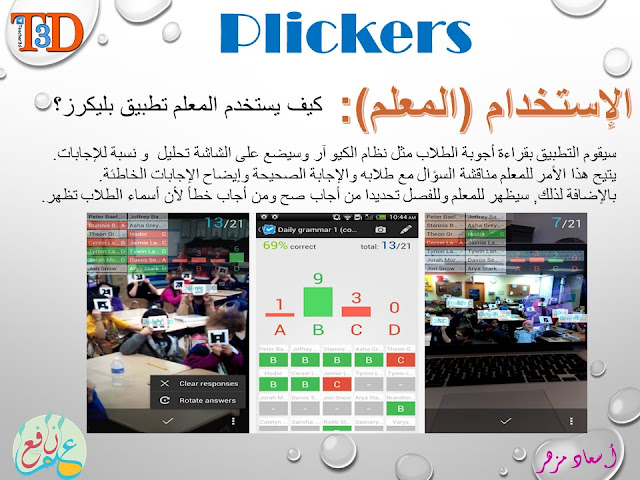 ويتميز هذا البرنامج بمساعدة المعلم على الحصول على اجابات التلاميذ وتقييمهم في وقت واحد .