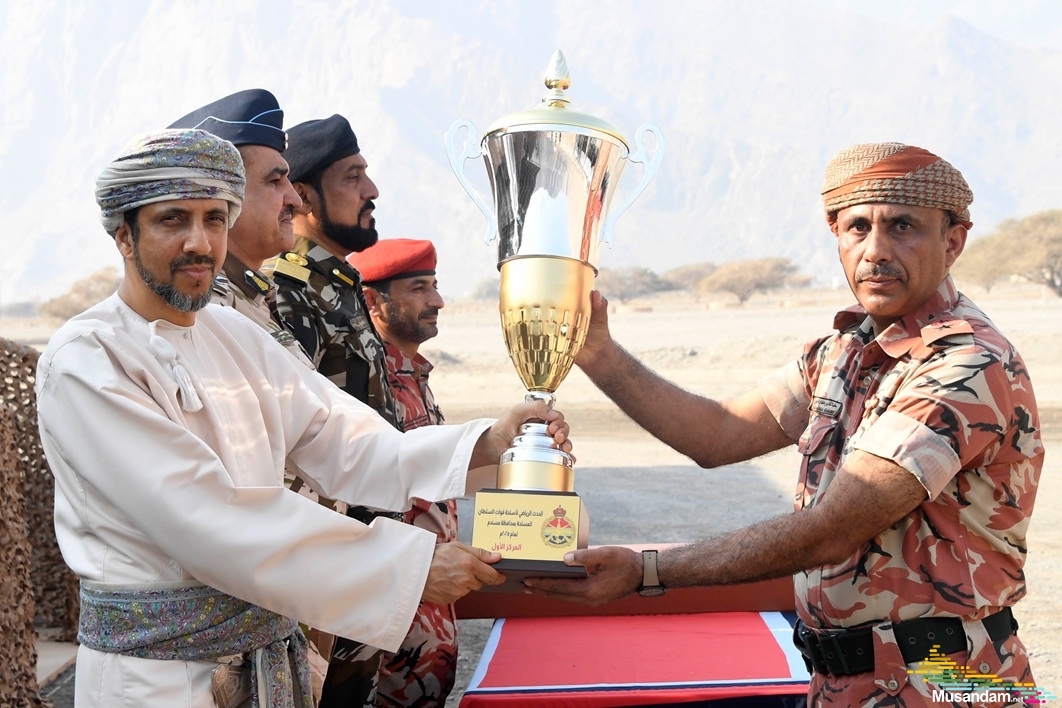 وفي الختام قام معالي السيد محافظ مسندم راعي المناسبة ويرافقه اللواء الركن طيار خميس بن حماد الغافري قائد سلاح الجو السُّلطاني العُماني، بتكريم الوحدات والحاصلين على المراكز الأولى في مختلف المسابقات، حيث حقق الجيش السُّلطاني العُماني المركز الأول على المستوى العام في البطولة، فيما نال سلاح الجو السُّلطاني العُماني المركز الثاني، وحصلت البحرية السُّلطانية العُمانية على المركز الثالث.