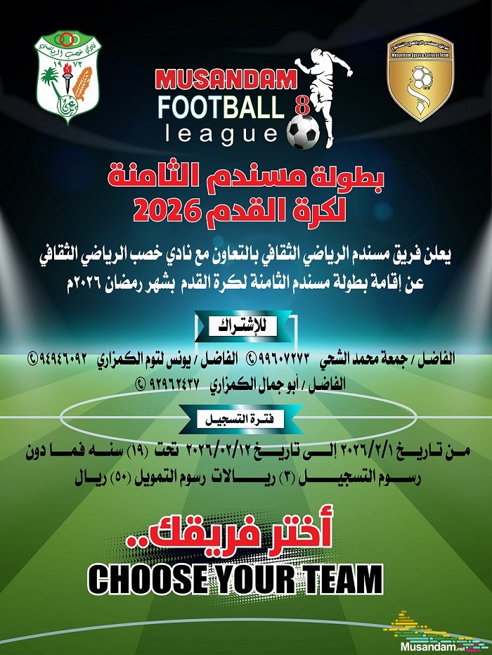 فريق مسندم يعلن أسماء رؤساء اللجان المنظمة لبطولة مسندم الثامنة 2026م