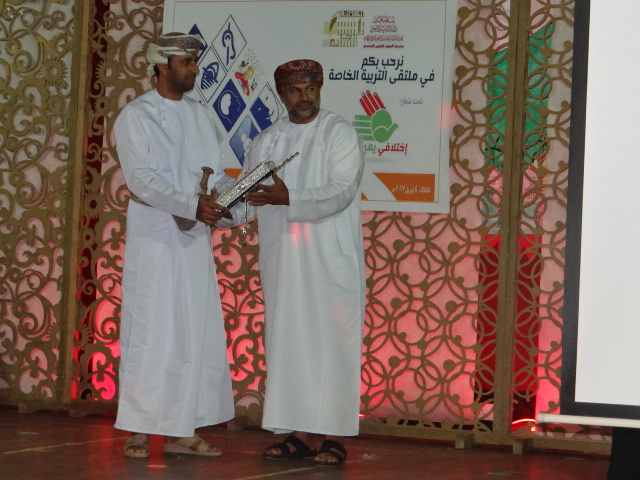 وبرزت الأخت الفاضلة / نوال العبري للتعبير عن كيانها ووجودها متخطية إعاقتها السمعية فأوجدت لنفسها بعزيمتها أن تكون موظفة بدائرة التنمية الاجتماعية موضحا لغة إشارتها معلم الدمج السمعي المعلم أيمن مصطفى رزق