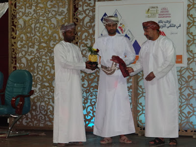 ثم انتقلنا للترحيب بالحضور الكريم بأبيات شعرية صدحت بها حناجر هلال بن حمد البلوشي وطيف بنت عيد الصوافي