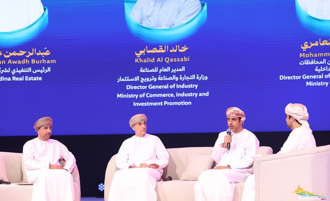 الجلسة الحوارية الأولى شارك في الجلسة كلٌّ من:م. خلفان بن مسعود الناعبي – مدير عام التخطيط العمراني، وزارة الإسكان والتخطيط العمراني و م. خالد بن سليم القصابي – مدير عام الصناعة، وزارة التجارة والصناعة وترويج الاستثمار و م. عبدالرحمن بن عوض برهام – الرئيس التنفيذي، شركة المدينة العقارية و م. محمد بن سيف العامري – مدير عام شؤون المحافظات، وزارة الداخلية و ادارها المهندس ميسر بن علي