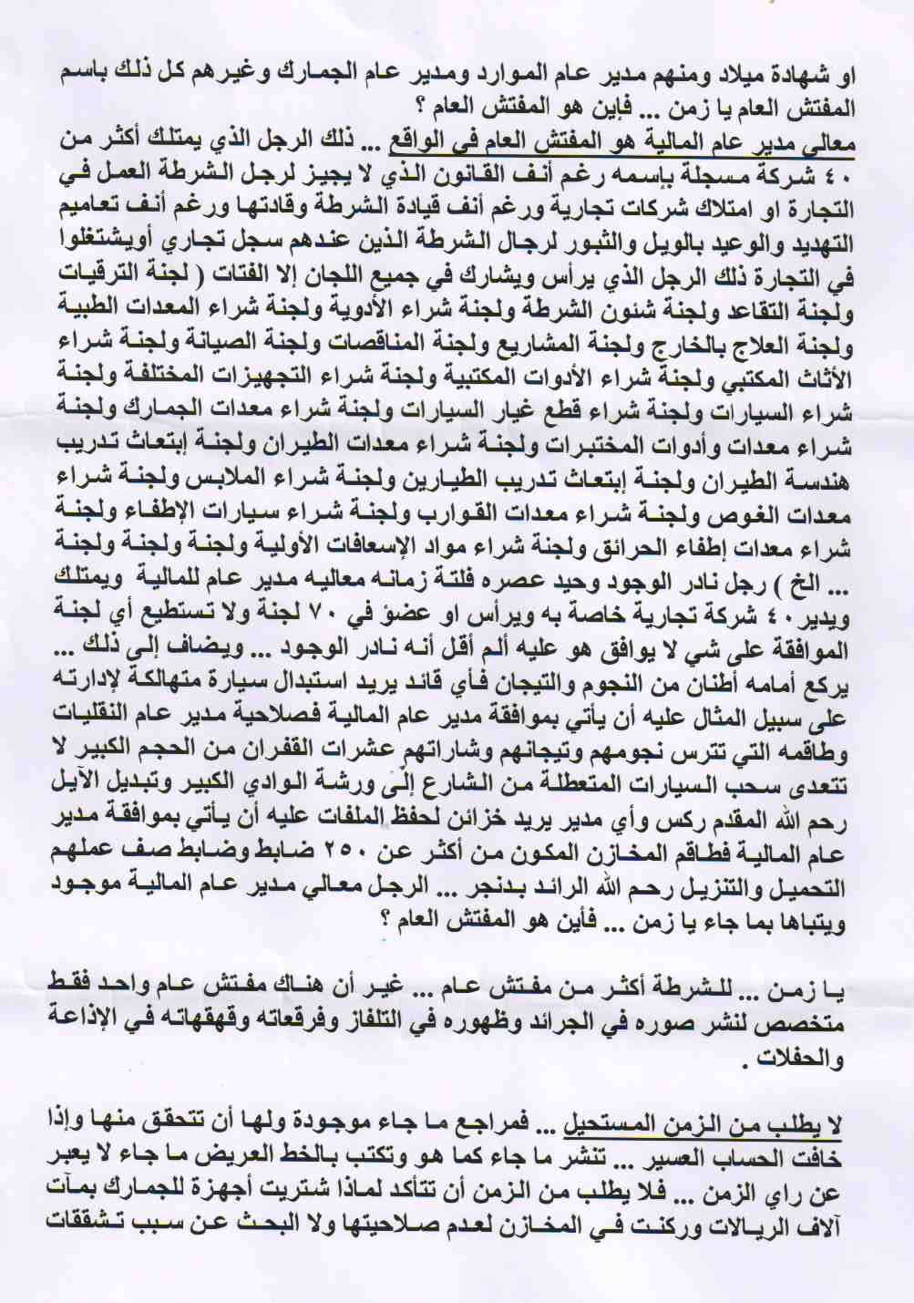 إنتهت القصة وسأدعكم تفسرونها كيفما شئتم إلى هنا واليوم المفتش يكتفي بطرده من الشرطة وحقيقة لا أعرف إذا كان ينوي فعلا تقديمه للمحاكمة ولا أعول على المفتش شيء إلا إذا كان ينوي إستخدامها للبهرجهة الاعلامية ليتصل بمحمد علي من الشبيبة وباقي القصة تعرفونها وسلام حار مذهّب لمحمد علي. المصادر تقول أن مكي يتوسط حالياً لذلك العميد الفاسد, ليتكرر أمامنا سيناريو الوزير خميس العلوي الذي خرج منها شريفاً ليصبح اللص ملك ليخرج العميد هو الآخر منها أيضاً ملك.