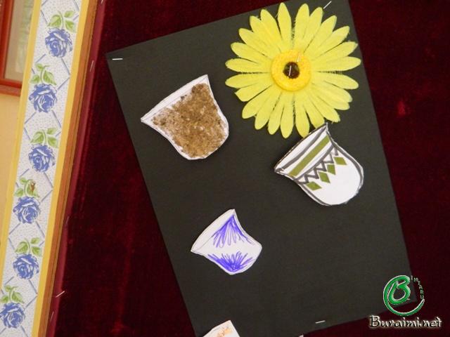 وغرس اليوم في المشاركين في هذه الورشه فن التشكيل بخامات البيئه